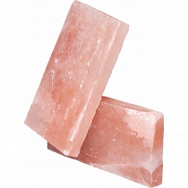 Цвет минерала зависит от процента железа в её составе и имеет диапазон от розового до красного и иногда черного. Рисунок, фактура, полезные свойства и способность выдержать температуру до пятисот градусов Цельсия делают камни из “розовой” соли любимым материалом для декора бань и саун.