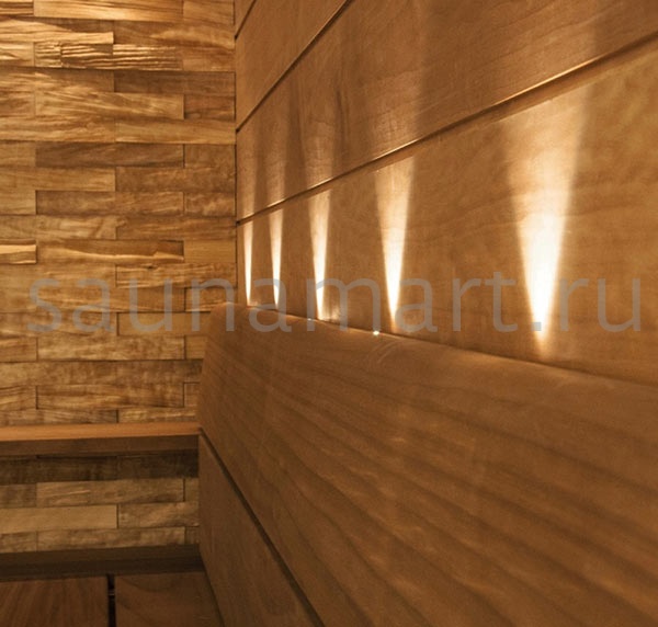 Преимущества: энергоэффективность (1 Вт), простота монтажа, создание расслабляющей атмосферы, устойчивость к условиям сауны.