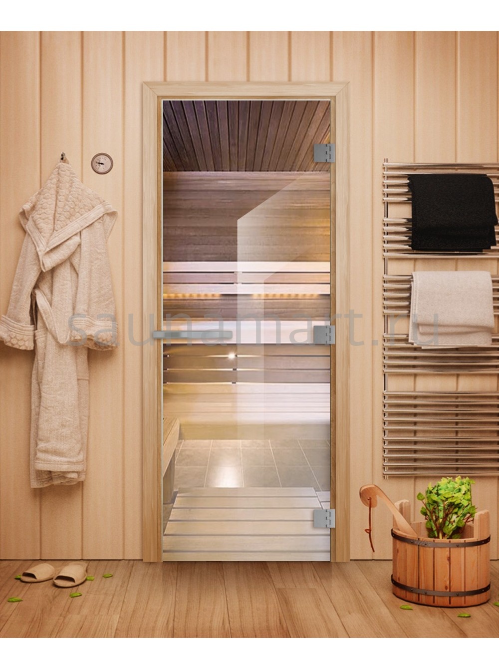 Профессиональная дверь с прозрачным стеклом увеличенной толщины для саун и бань. Сочетает в себе современный дизайн и надежную конструкцию, обеспечивая долговечность и эстетическую привлекательность.