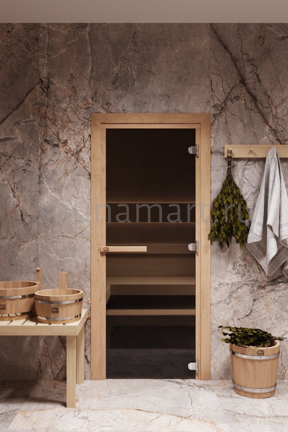 Дверь из закаленного стекла великолепно вписывается в парную любой бани и сауны.