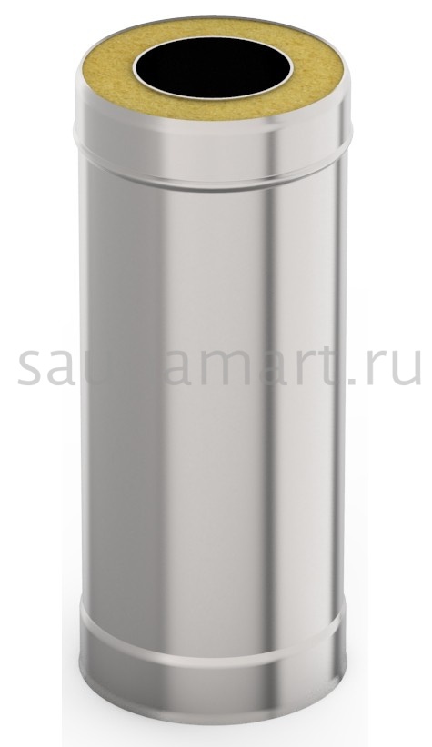 Труба-термо 1.0м 115?200 AISI 430/430 от производителя "Гефест" — базовый элемент термоизолированного дымохода. Конструкция длиной 1 метр выполнена из нержавеющей стали AISI 430 с толщиной стенок 0.8мм (внутренний контур) и 0.5мм (наружный контур), создавая эффективную воздушную прослойку между диаметрами 115мм и 200мм.