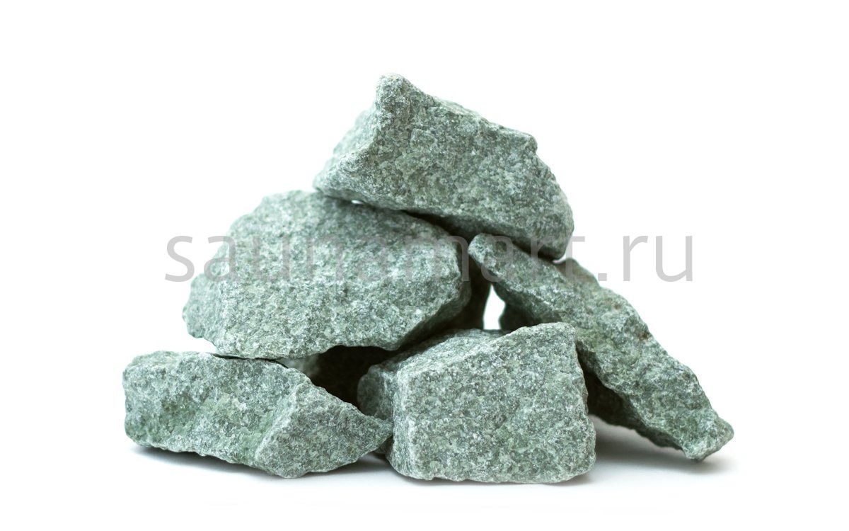 Камень жадеит колотый фракции 40-80 мм — натуральный минерал для банных печей. Упаковка: мешок 10 кг. Происхождение: Урал, Россия.