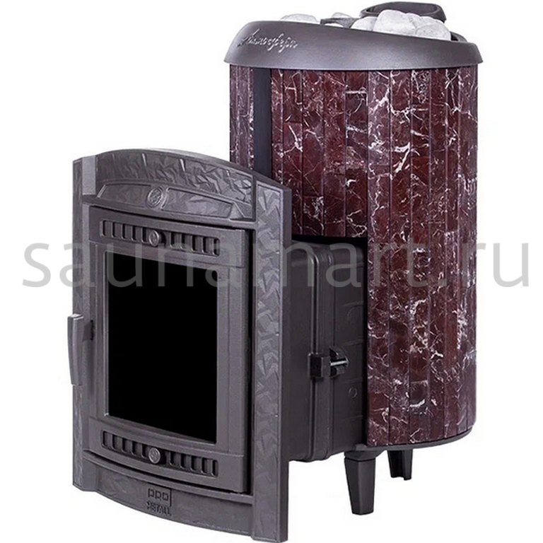 Практичная и компактная модель. Ламели по периметру внешней каменки не только обладают хорошими теплонакопительными свойствами, но и придают печи оригинальный внешний вид.