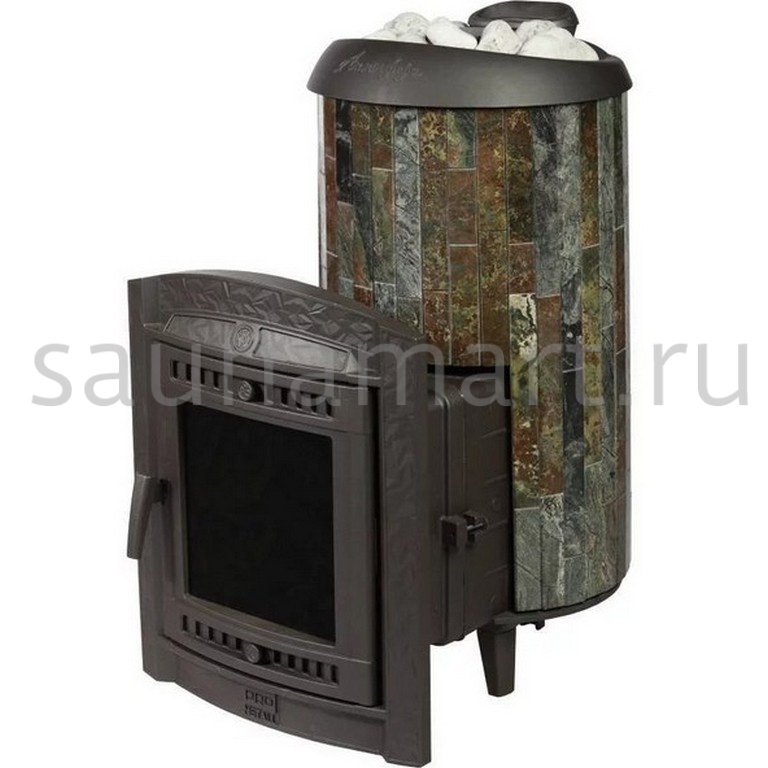 Модель с увеличенной каменкой и повышенной производительностью. Ламели по периметру внешней каменки не только обладают хорошими теплонакопительными свойствами, но и придают печи оригинальный внешний вид.