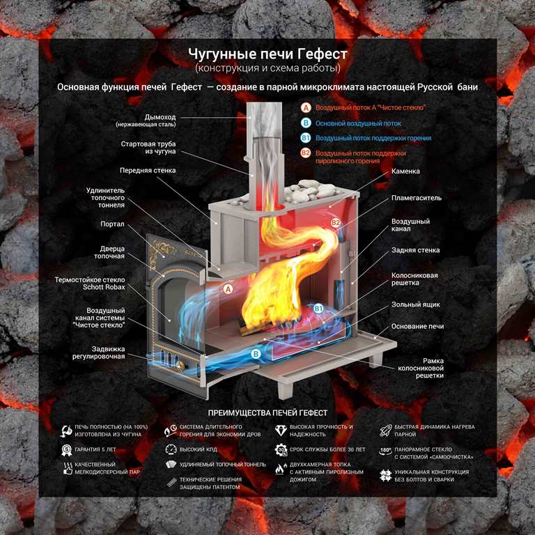 - Печь полностью изготовлена из чугуна