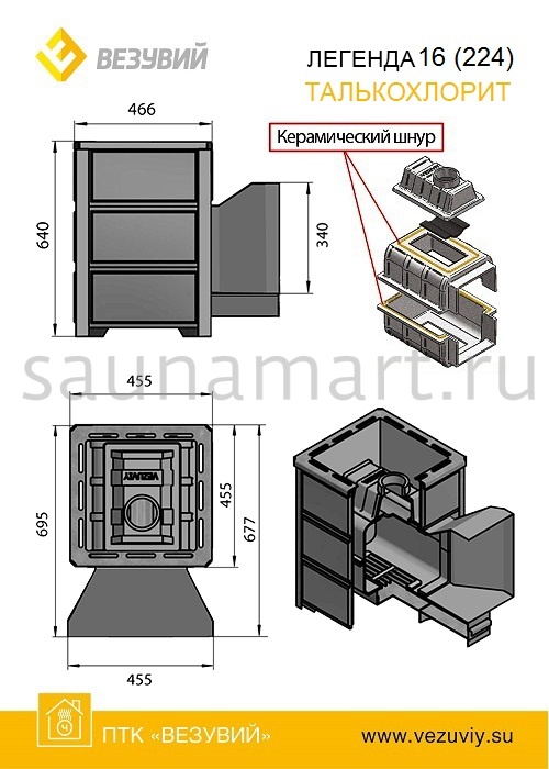 Печь дровяная ВЕЗУВИЙ Легенда 16 талькохлорит дверца 224