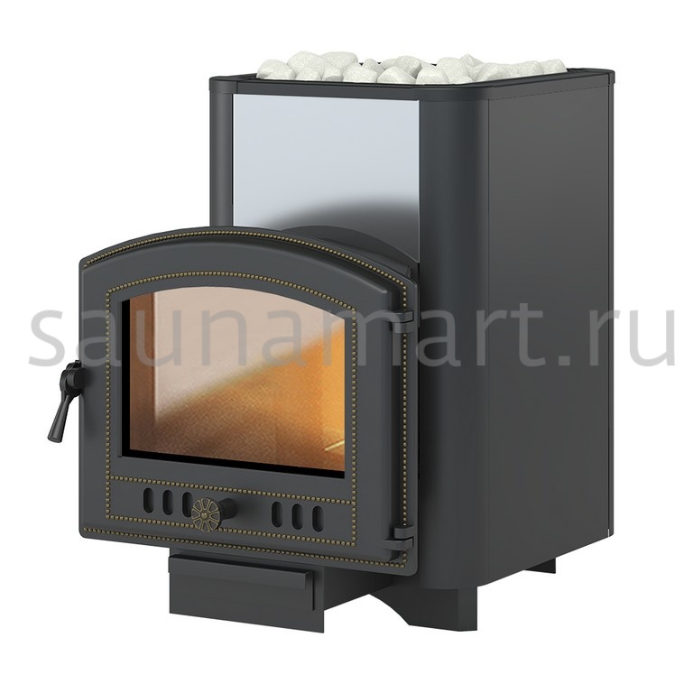 Банная чугунная печь Сенсация 28 (224) укомплектована чугунной герметичной дверцей Везувий 224 с жаропрочным стеклом «SHOT ROBAX».