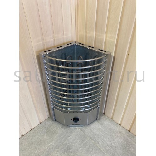 Электрическая печь ЭКМ 4.5 кВт "Угловая Олимпия Плюс" — угловая и пристенная модель с встроенным пультом управления, идеально подходящая для компактных бань. Производится в России (г. Челябинск) и подходит для помещений объемом от 4 до 8 м?.