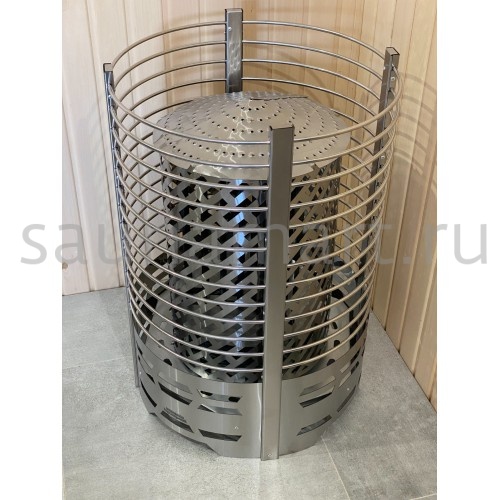 Электрокаменка "Зевс" выполнена в виде широкого цилиндра с радиусными прутьями, что позволяет вместить до 200 кг камня. Нагревательные элементы установлены по центру в специальном корпусе (кожухе), который не контактирует с камнем и поддаваемой водой. Камень закладывается только в пространство между внешним корпусом и до колпака с ТЭНами.