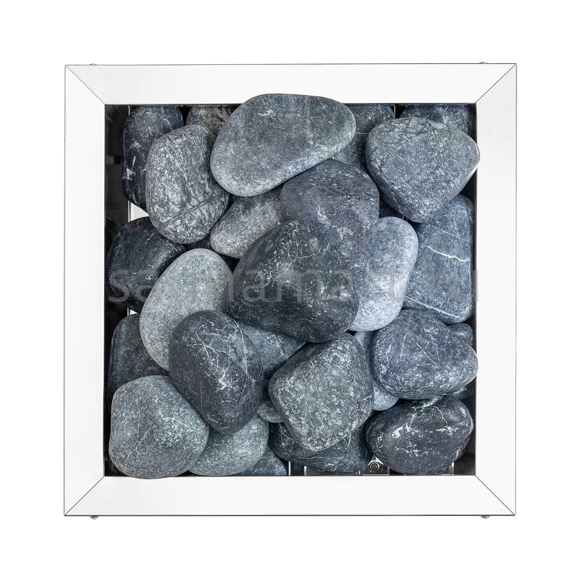 ТЭН из специальной нержавейки обладает повышенной электробезопасностью и большой тепловой инерцией. Представленная модель электрокаменки имеет отсек для камней, который вмещает до 80 кг. Она монтируется напольно. Электропечь не имеет в комплектации выносного пульта управления, который приобретается отдельно.