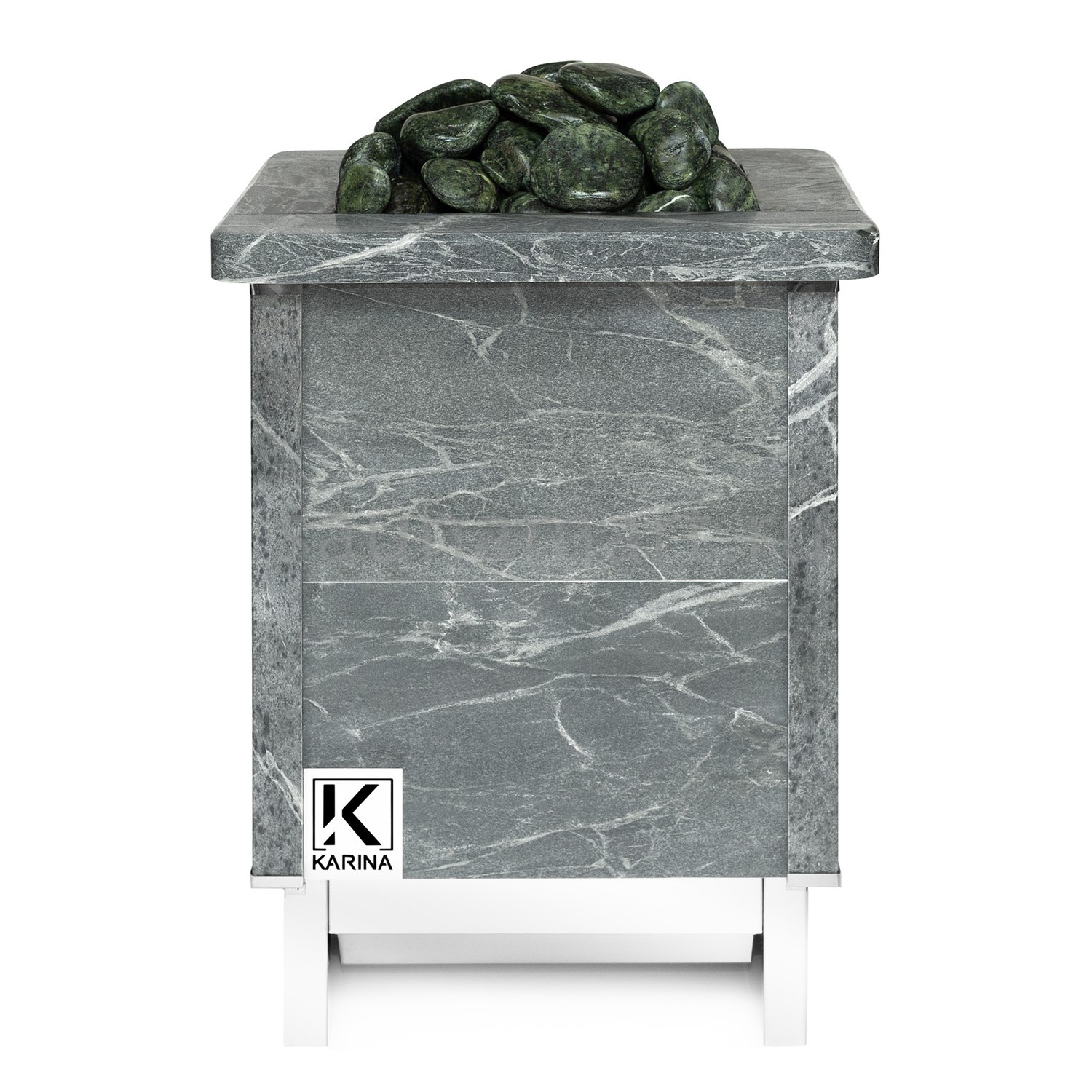 Электрическая печь KARINA Quadro 6 Талькохлорит – это электрокаменка, облицованная натуральным камнем со всех сторон, и обладающая мощностью оптимальной для домашних и небольших бань и саун объемом до 7 м3.