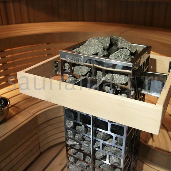 Sawo Cubos - линейка печей с необычным дизайном. Внешне электрокаменки напоминают каменную башню. Нагревательные ТЭНы находятся по центру. Снаружи каркас печи выполнен в виде сетки, которая заполняется большим количеством камней для сауны.