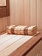 Подголовник позволяет с удобством расположиться на полке во время банных процедур и полностью расслабить тело. При использовании подголовника шея оказывается полностью расслаблена и не испытывает напряжения, а голова приподнята, что предотвращает прилив крови к голове, крайне нежелательный в условиях высокой температуры. Подголовник украшен геометрическим орнаментом из светлых и темных участков, которые чередуются между собой.
