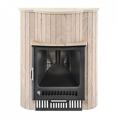 Для печи «Малютка» серии ПФ производитель V?hringer выпускает порталы из натурального мрамора, змеевика и жадеита. Облицовочные материалы поступают на завод в слэбах, заготовки разрезают на пластины, которые затем навешивают на печь.