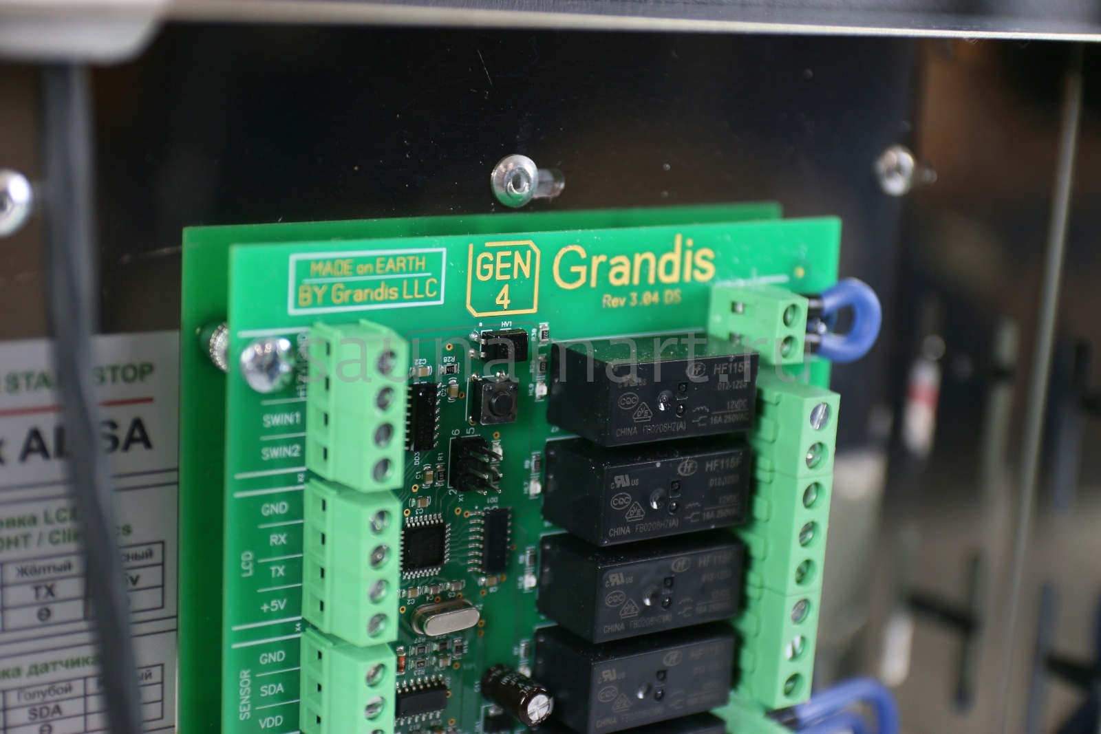 Управление увлажнителем Grandis DHT, осуществляется сложными и современными микроконтроллерами ATMEL. Мощная аппаратная база и позолоченная центральная плата, способствуют быстрой передаче цифровых программных алгоритмов между компонентами всей системы. Сенсорная LCD панель управления позволяет легко контролировать Влажность Вашей сауны или других помещений, LCD панель оснащён функциями позволяющий управлять: Удаленным стартом, 2-х зонным Светом, Ароматизацией, Вентиляцией, Авто очисткой и другими функциями. Цифровой датчик влажности оперативно анализирует влажность и включает пар при необходимости. Увлажнитель экономит Ваше время, а быстрый старт оптимизирует расход электроэнергии. Увлажнитель может включится в систему Умный Дом. Удобное меню на Русском, Английском и Немецком поможет индивидуализировать настройки системы.