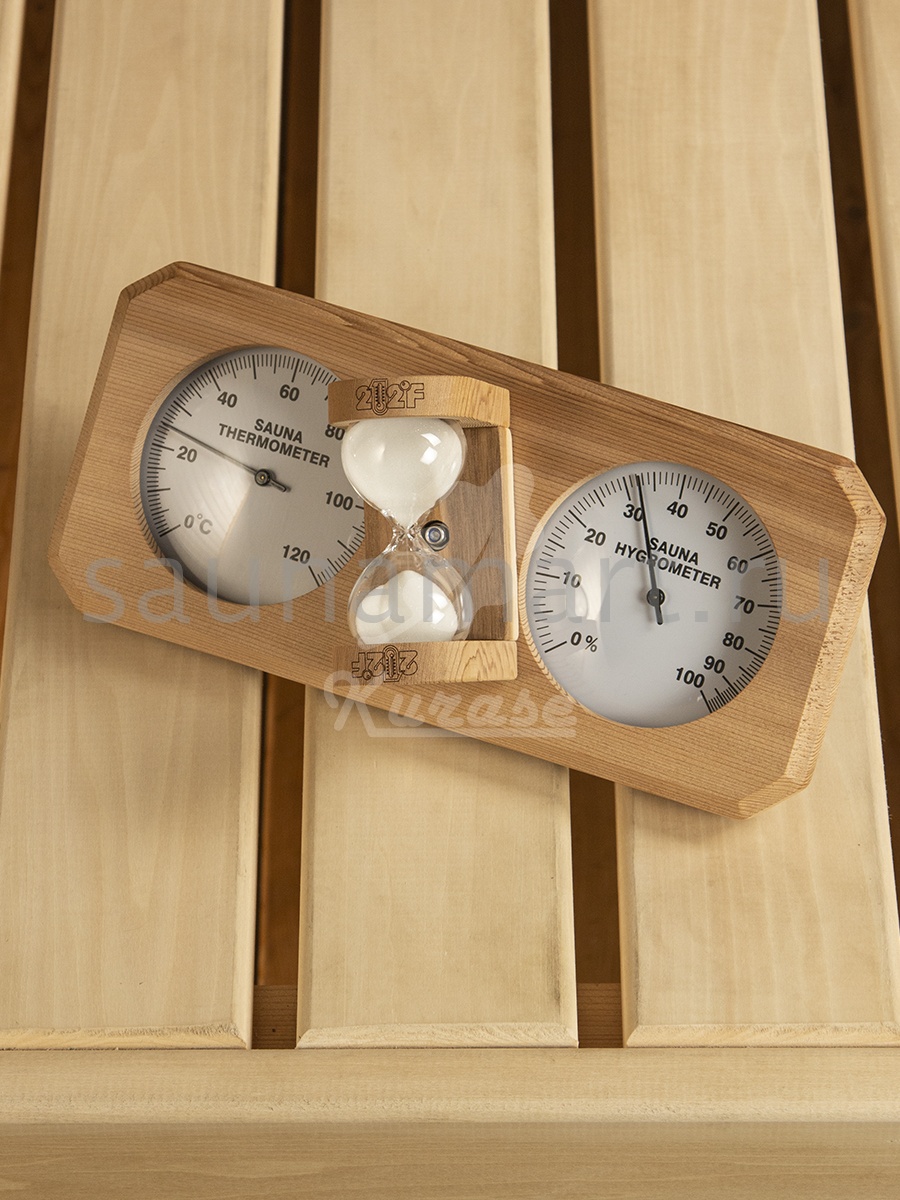 Термогигрометр с песочными часами идеально подойдет для использования в банях и саунах.