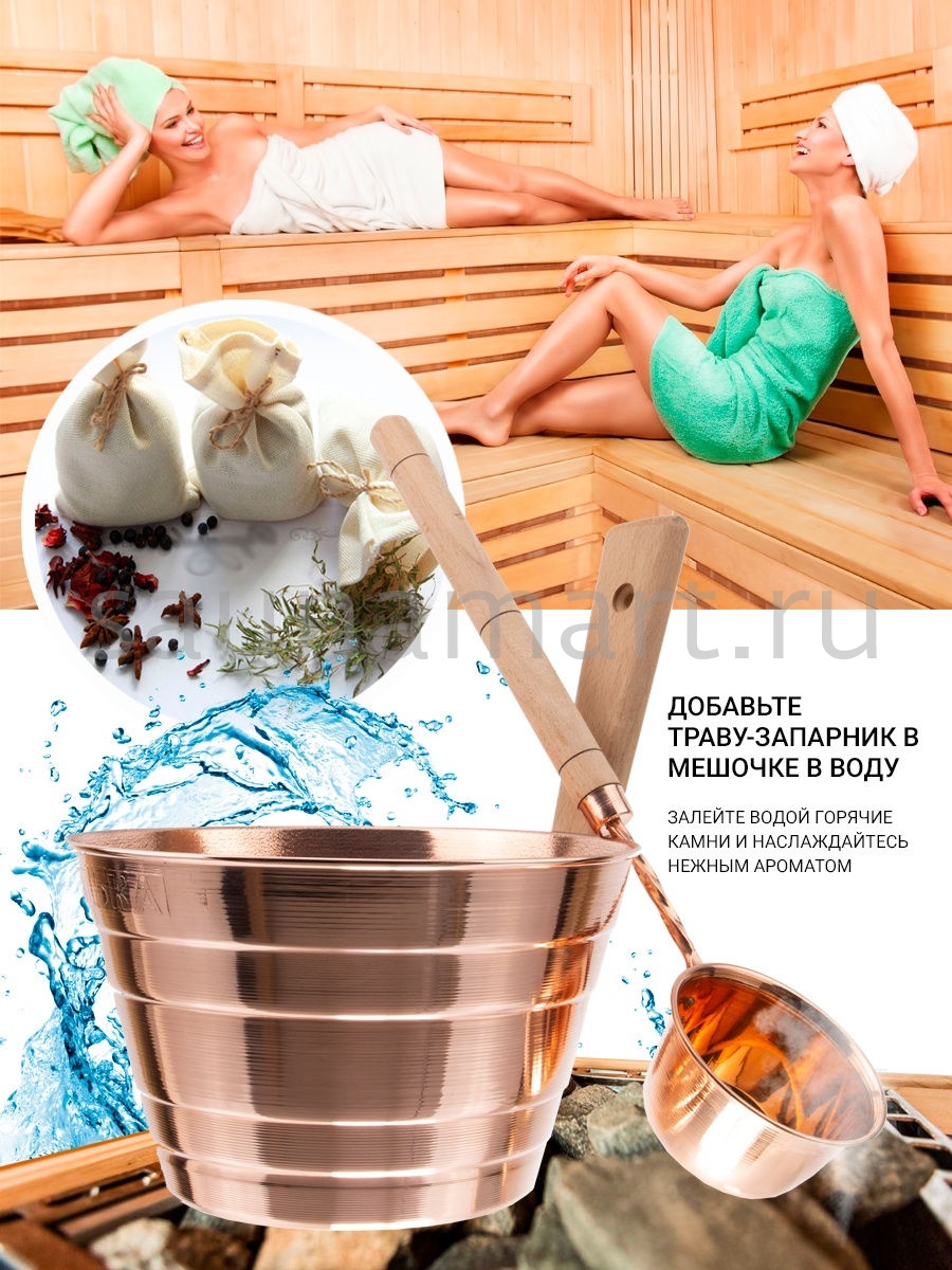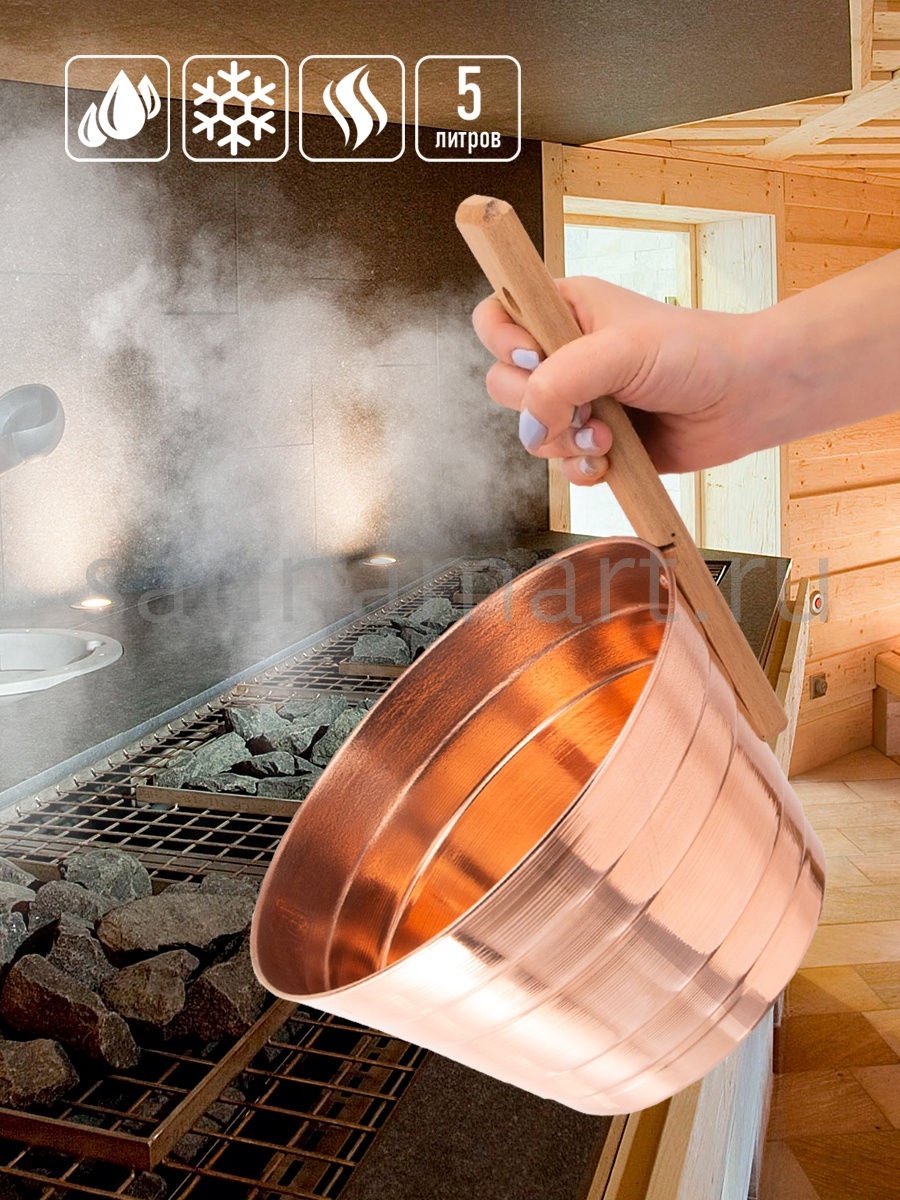 Ушат для бани и сауны из меди предназначен для запаривания банных веников, для обливания и для разведения ароматических масел и настоев из трав. Для удобства использования, шайка оснащена ручкой из бука - это позволит сберечь руки от ожога, даже если в шайку только что налили кипяток. Классический, элегантный дизайн ушата дополнит интерьер Вашей бани или сауны, создаст уют, и сделает пребывание в парной комфортным и приятным! Это очень выгодное приобретение, так как ушат отличается повышенной долговечностью - такую кадушку, в буквальном смысле слова, можно передавать по наследству. Запарник из меди обладает дезинфицирующим эффектом, что благотворно сказывается на качестве воды. Ведро для бани из меди устойчиво практически к любым внешним воздействиям. Размер ушата: д. 23,5 см, высота с ручкой 30 см, высота стенок 14,5 см, объем 5 л. Произведено в России. По желанию Вы можете дополнить данный ушат черпаком из меди из одной коллекции арт. 19546479