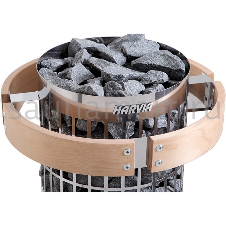 Защитный обод Harvia HPC4 обеспечивает безопасность и стильный внешний вид для электрокаменок Cilindro мощностью 11 кВт. Сочетание дерева и металла в конструкции создает декоративный эффект, а материалы устойчивы к влаге и высоким температурам.