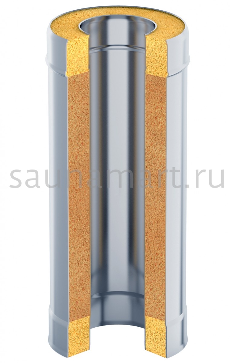 Изделие предназначено для монтажа вертикальных участков дымоходных систем банных печей и отопительных агрегатов. Маркировка "(К)" указывает на комплектность поставки. Качественная сталь AISI 430 обеспечивает устойчивость к температурам до 800°C и коррозионную стойкость, гарантируя безопасную и долговечную эксплуатацию дымохода.