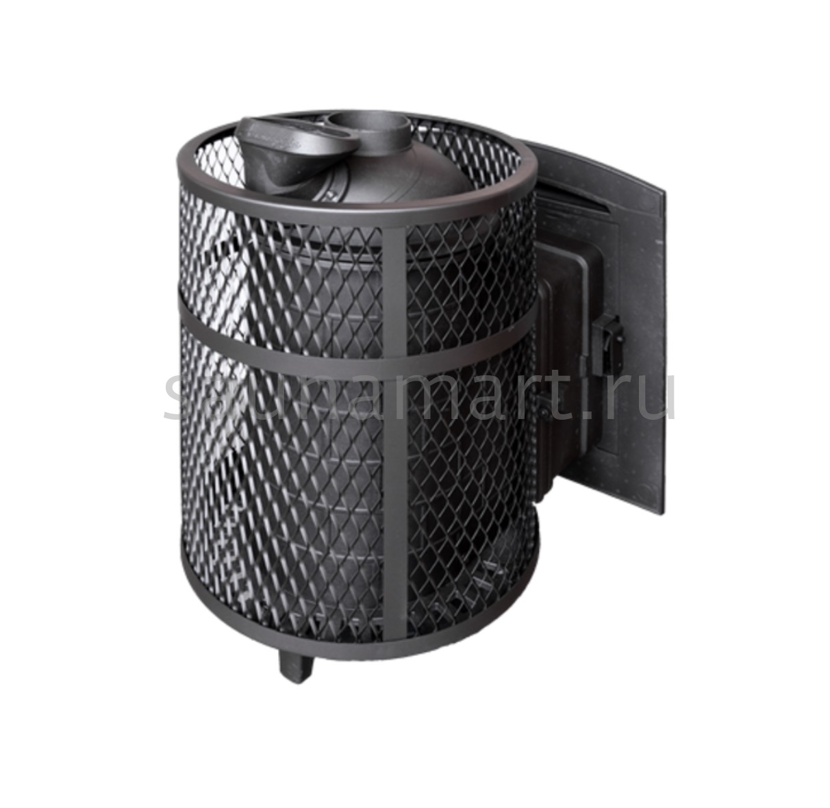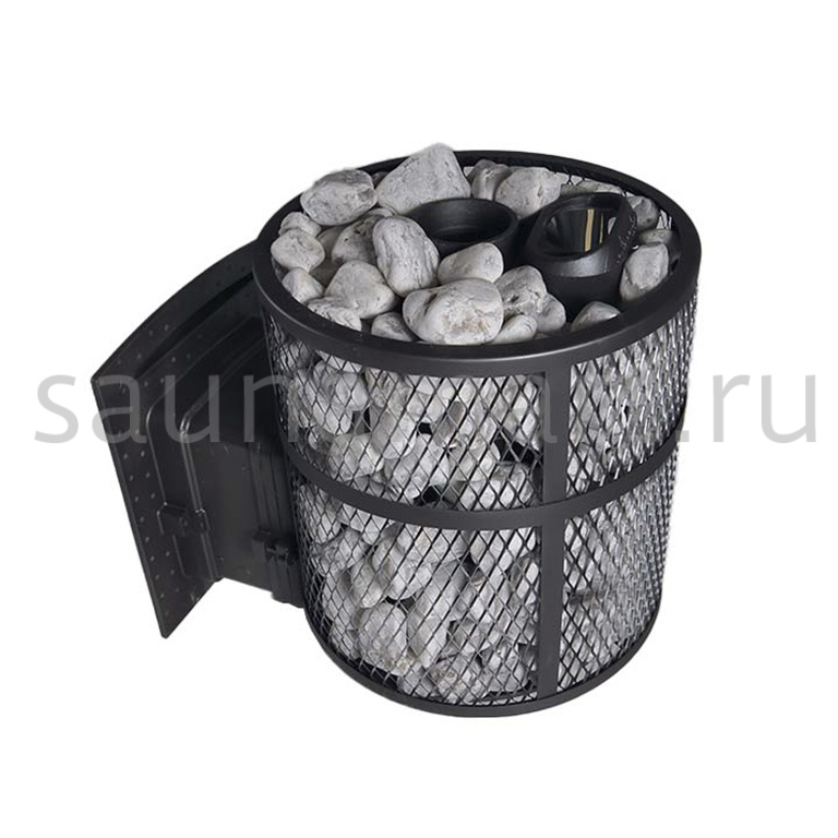 Ультра компактная модель банной печи. Кожух печи изготовлен в виде сетки из нержавеющей стали и полностью заполняется природными камнями, обеспечивая высокую динамику нагрева парильного помещения.