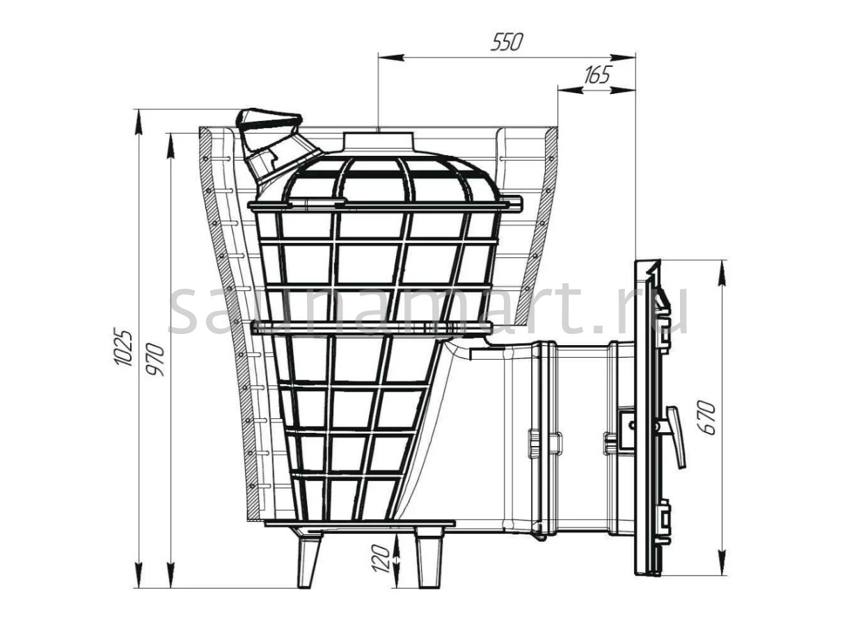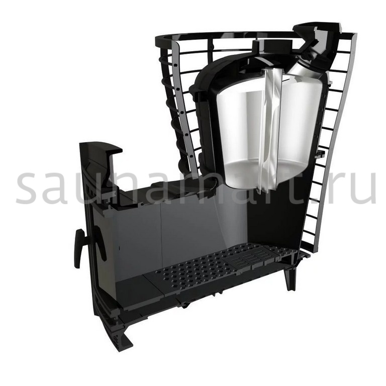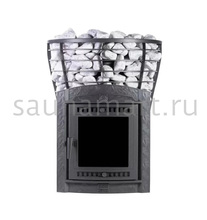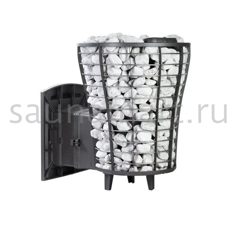 Модель повышенной мощности, обеспечит максимальное количество пара в больших помещениях. Кожух печи изготовлен в виде сетки из нержавеющей стали с прямоугольными ячейками и полностью заполняется природными камнями, обеспечивая высокую динамику нагрева парильного помещения.