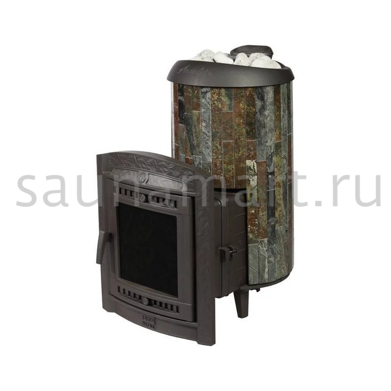 Модель с увеличенной каменкой и повышенной производительностью. Ламели по периметру внешней каменки не только обладают хорошими теплонакопительными свойствами, но и придают печи оригинальный внешний вид.