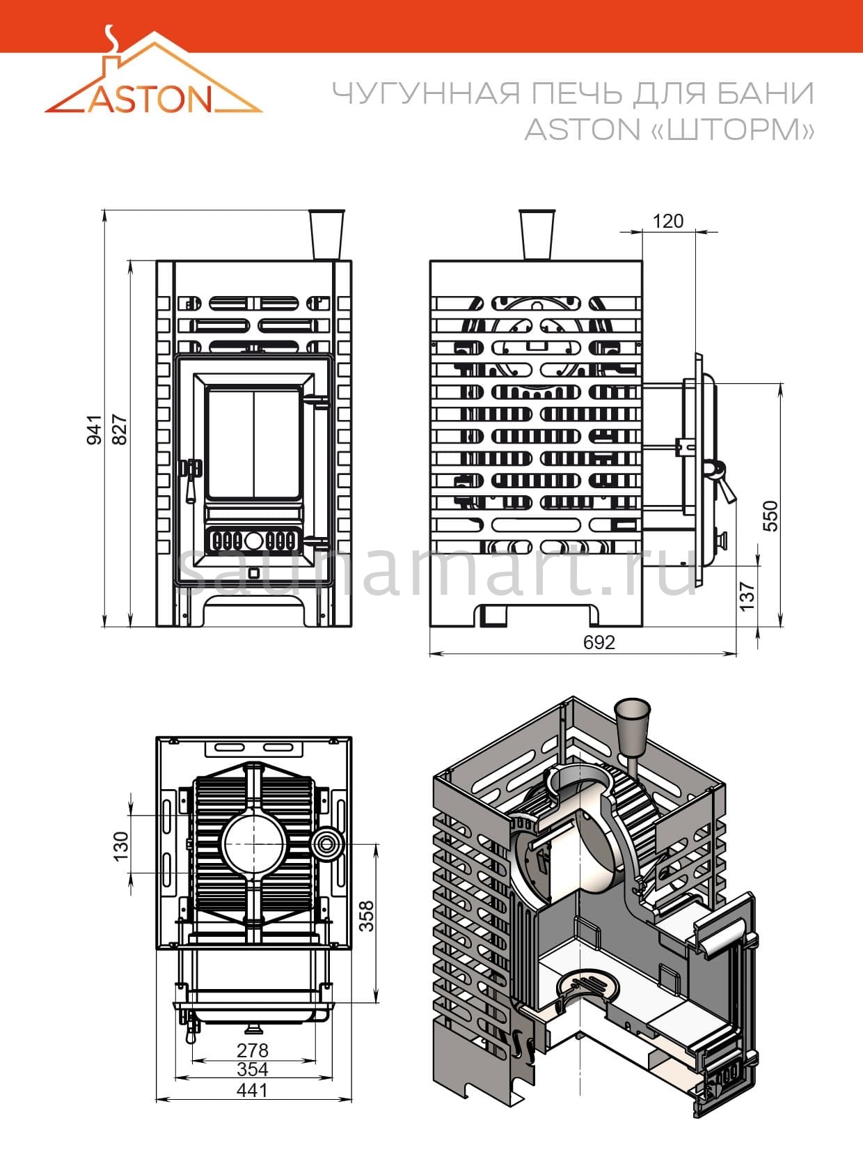 Отзывы к Печь дровяная чугунная ASTON Шторм 20 дверца 350 +ДОБАВЬТЕ СВОЙ ОТЗЫВ