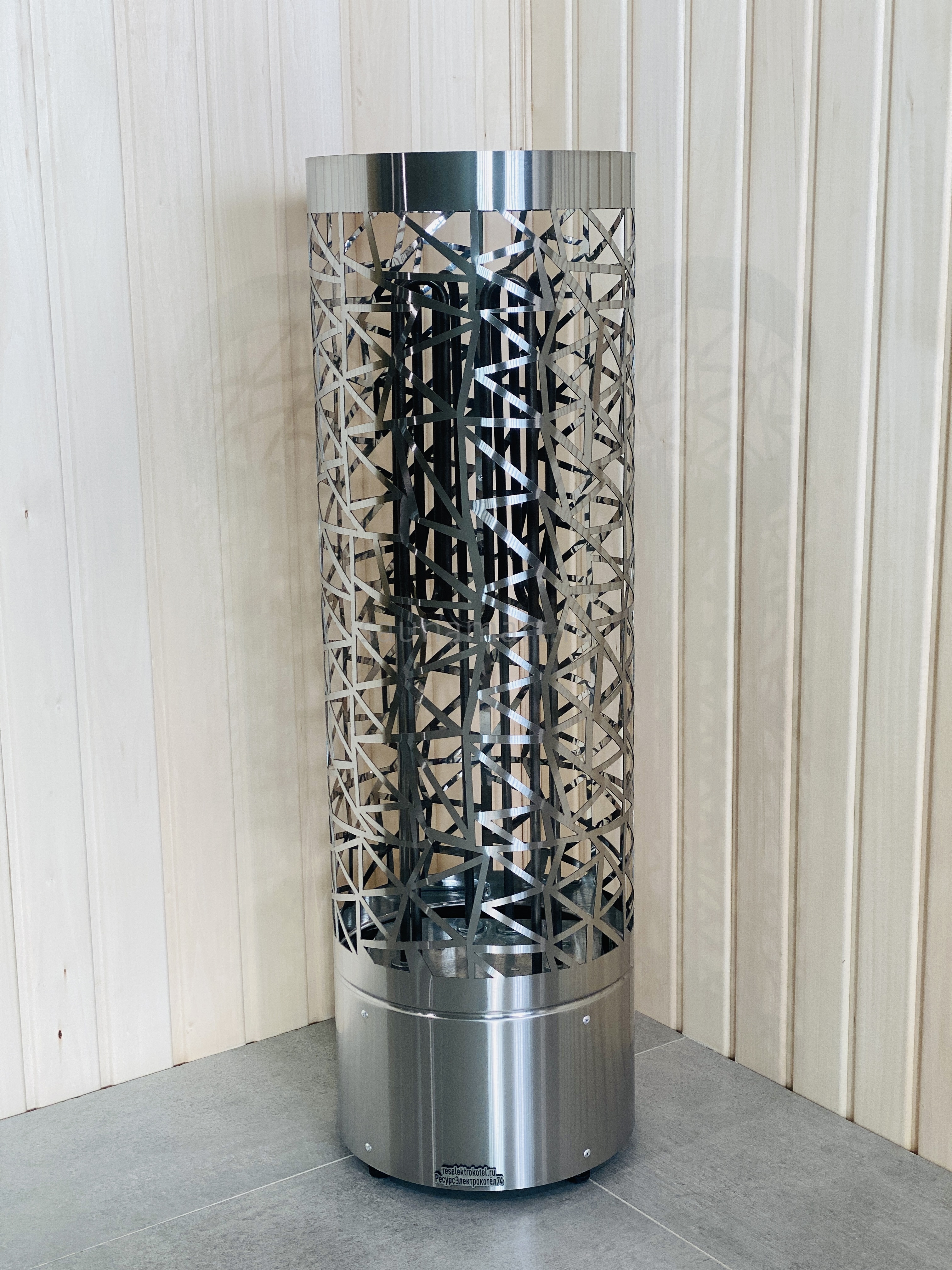 Комплектация: выносной электронный пульт управления с 5-метровым кабелем. ТЭНы изготовлены из нержавеющей стали AISI 304. Размещение: напольное на негорючее основание. Каменка закрытого типа с верхней загрузкой. Парообразование: ручное через дверцу. Оснащена защитой от перегрева и системой аварийного отключения.