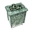 Электрическая каменка со всех сторон облицована натуральным змеевиком. Печь с подобным дизайном стильно смотрится в парильном помещении. Змеевик уже долгие годы используется для внутренней отделки бань. Его называют «аптекарским камнем» за его целебные качества. Минерал оказывает обеззараживающий эффект, положительно влияет на кости, оказывает успокаивающее воздействие и укрепляет иммунитет.