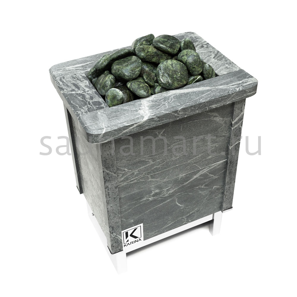 Электрическая печь KARINA Quadro 7,5 Талькохлорит – это электрокаменка, облицованная натуральным камнем со всех сторон, и обладающая мощностью оптимальной для семейных саун и средних бань объемом до 9 м3.